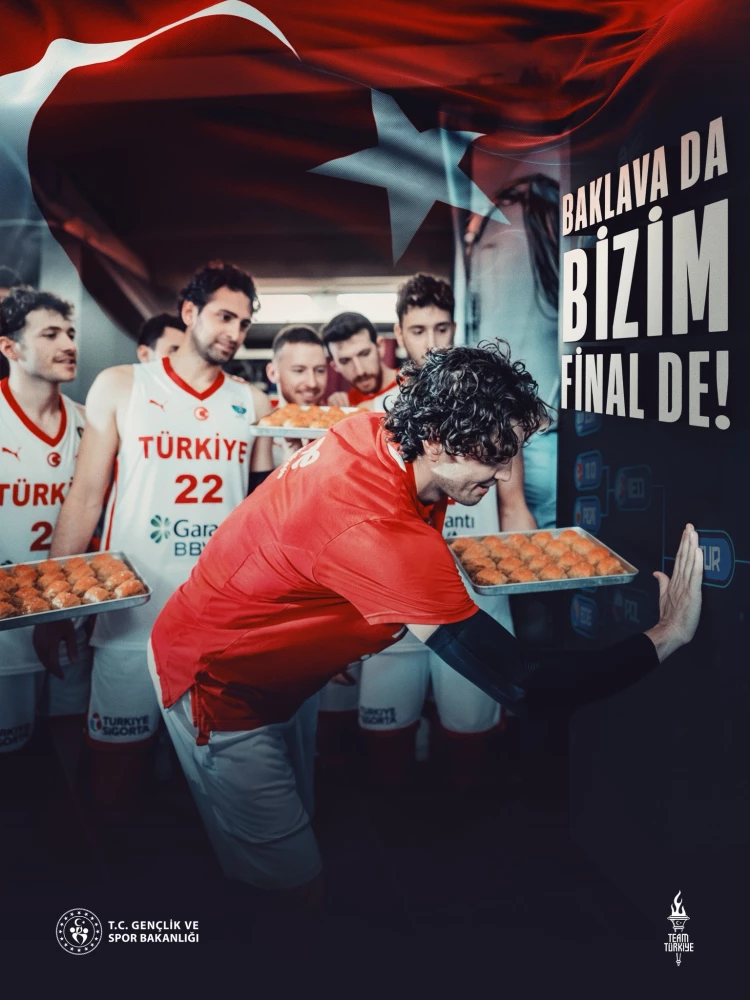 A Erkek Milli Basketbol Takımı, FIBA 2025 Avrupa Şampiyonası yarı finalinde Yunanistan’ı 94-68’lik skorla mağlup ederek finale adını yazdırdı. Türkiye Basketbol Federasyonu (TBF), “Yürüyelim arkadaşlar!” mesajıyla zaferi kutlarken, Cumhurbaşkanı Recep Tayyip Erdoğan, “Finalde Allah yardımcınız olsun, sonu şampiyonluk olsun #12DevAdam!” diyerek millilere destek verdi. Milliler, 14 Eylül Pazar günü finalde Almanya ile karşı karşıya gelecek.