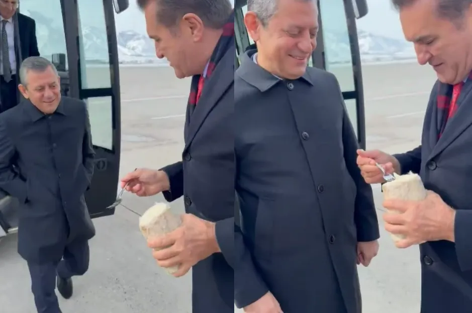 CHP Erzincan Milletvekili Mustafa Sarıgül, memleketi Erzincan'ı ziyaret eden CHP Genel Başkanı Özgür Özel'i Erzincan havalimanında karşılarken "Sayın Genel Başkanım canım Erzincan'a yemeden girilmez" diyerek tulum peyniri ikram etti. Özer'de ''Atsan girmem zaten'dedi ve sonra peyniri yedi.