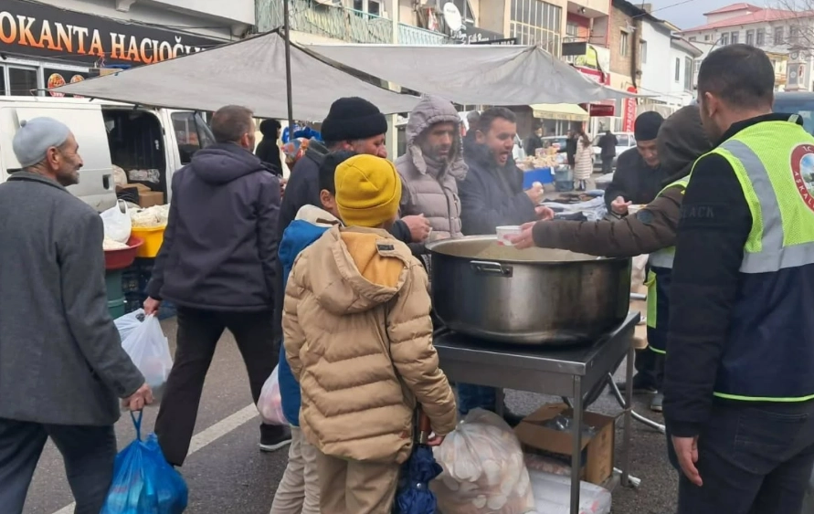 Soğuk rüzgar umurlarında değildi kimsenin; caddeyi sıcak sohbetler, kahkahalar ve tebessümler doldurdu. Herkes çorbasını alıp ekmeğini kaptığında, gönüller adeta bahar güneşi gibi ısındı.