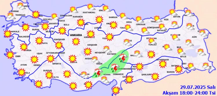 ANKARA (İGFA) - Meteoroloji Genel Müdürlüğü 29 Temmuz Salı gününe ilişkin hava tahmin raporunu yayımladı.