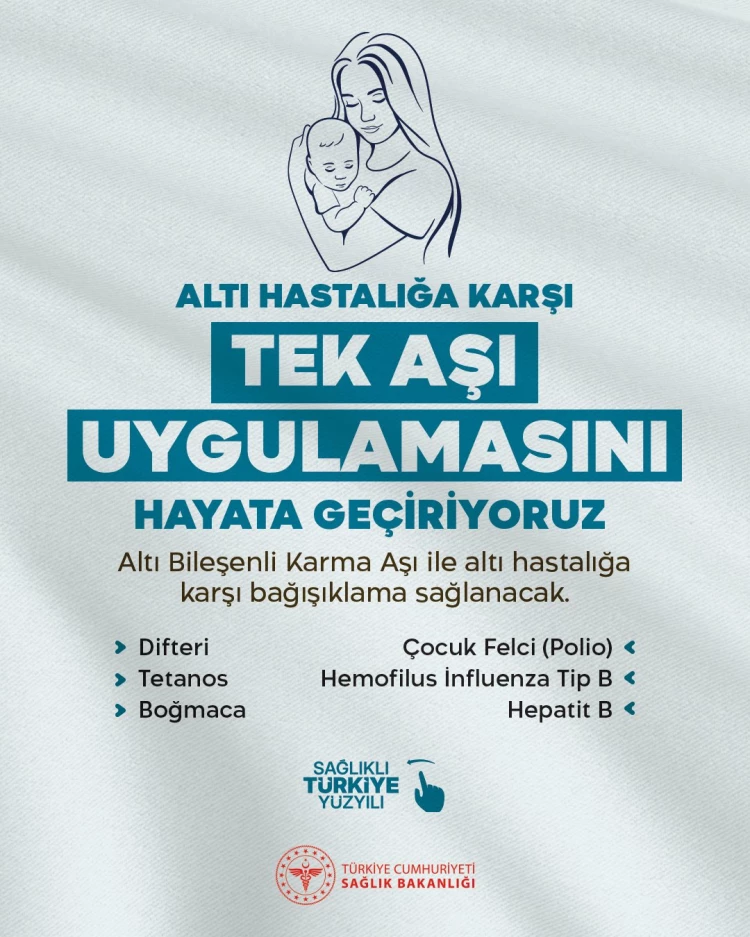 6 hastalığa karşı bağışıklama sağlayacak hastalıklar ise şöyle: Difteri, Tetenos, Boğmaca, Çocuk felci (polio), Hemofilus influenza Tip B ile Hepatit B.