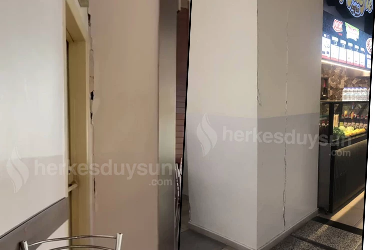 2000 yılında açılan AVM’nin kolon ve duvarlarında derin çatlaklar oluştuğu gözlendi.