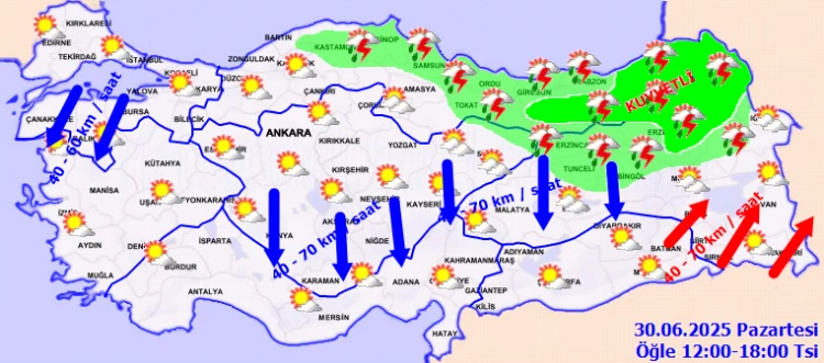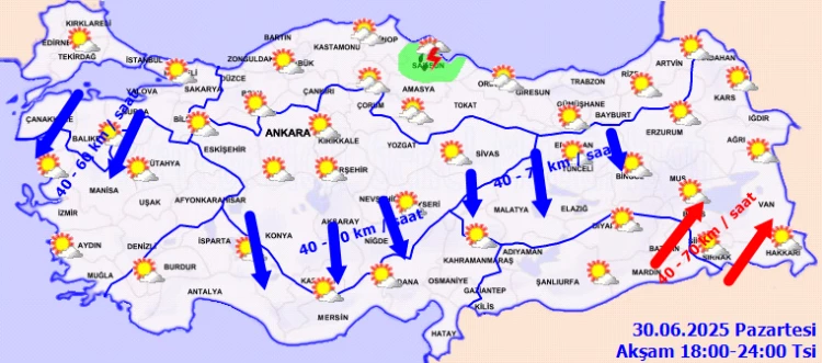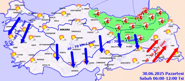 TRHABERTÜRK ANKARA - Meteoroloji Genel Müdürlüğü, 30 Haziran 2025 Pazartesi gününe ilişkin hava tahmin raporunu yayımladı.