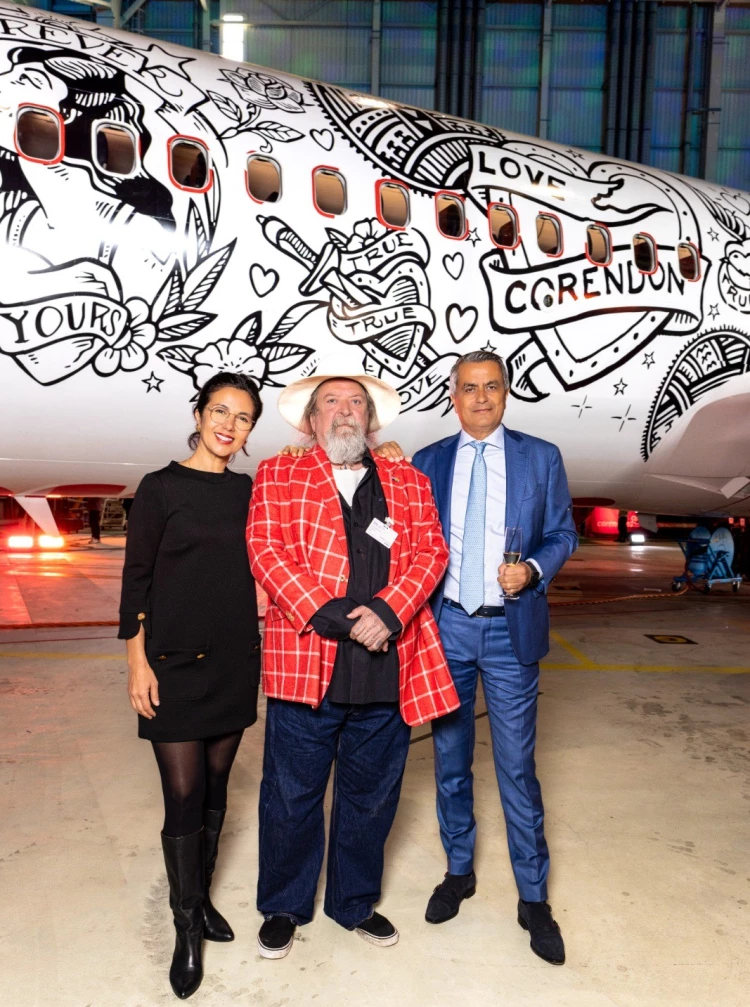 Dövme tasarımlı uçak fikri, Corendon Dutch Airlines CEO’su Günay Uslu ile Henk Schiffmacher arasındaki bir sohbet sırasında ortaya çıkmıştı. Schiffmacher’in yıllar önce dile getirdiği tamamen dövme tasarımlı uçak hayali gerçeğe dönüştü.