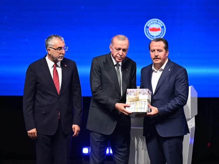 Erdoğan, 23 yıllık iktidarlarında kamu çalışanlarının mali ve sosyal haklarını güçlendirdiklerini, 2010 Anayasa referandumuyla toplu sözleşme hakkı getirdiklerini, 2023’te 460 bin sözleşmeli personeli kadroya geçirdiklerini belirtti. Başörtüsü yasaklarını kaldırdıklarını, Cuma namazı izni ve hac izni gibi düzenlemelerle çalışanların haklarını koruduklarını vurguladı. 2025 Ocak zammıyla en düşük memur maaşını 43 bin 726 TL’ye yükselttiklerini, reel artışın yüzde 266’ya ulaştığını aktardı. Ağustos’ta başlayacak 8. Dönem Toplu Sözleşme görüşmelerinde de çalışanların refahını gözeteceklerini söyledi.