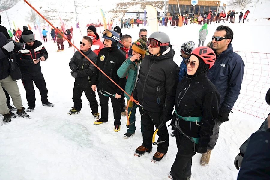 Palandöken Kayak Merkezi içinde yer alan yapay buz tırmanış alanı, sporcuların yoğun ilgisini çekerken, etkinlik renkli ve heyecan dolu anlara sahne oldu.