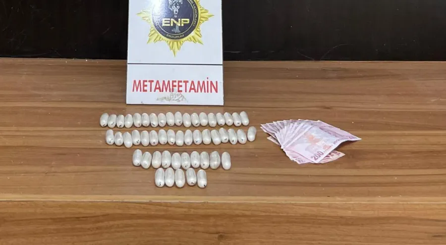 Erzurum İl Emniyet NSM Şube Müdürlüğü görevlileri ve NMAK (Narkotik Madde Arama Köpeği) MAGNUM ve SU ile yaptıkları çalışmalarda metamfetamin maddesi ele geçirdi.