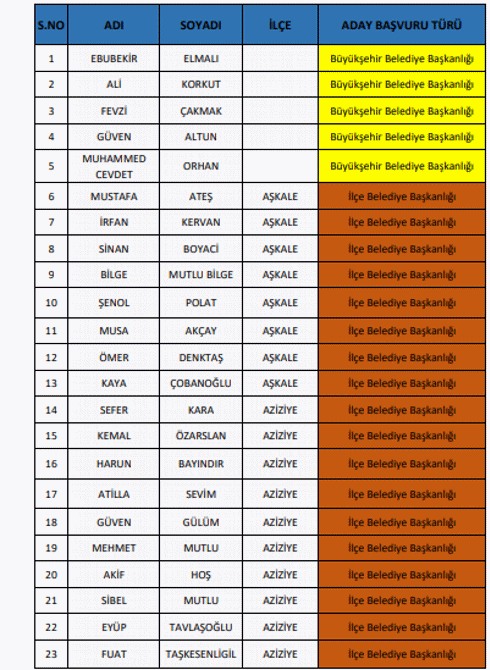 AK Parti İl Başkanlığı, Parti bünyelerinde görev yapmak isteyen Büyükşehir ve İlçelere müracaat eden aday adaylarının listesini paylaştı.