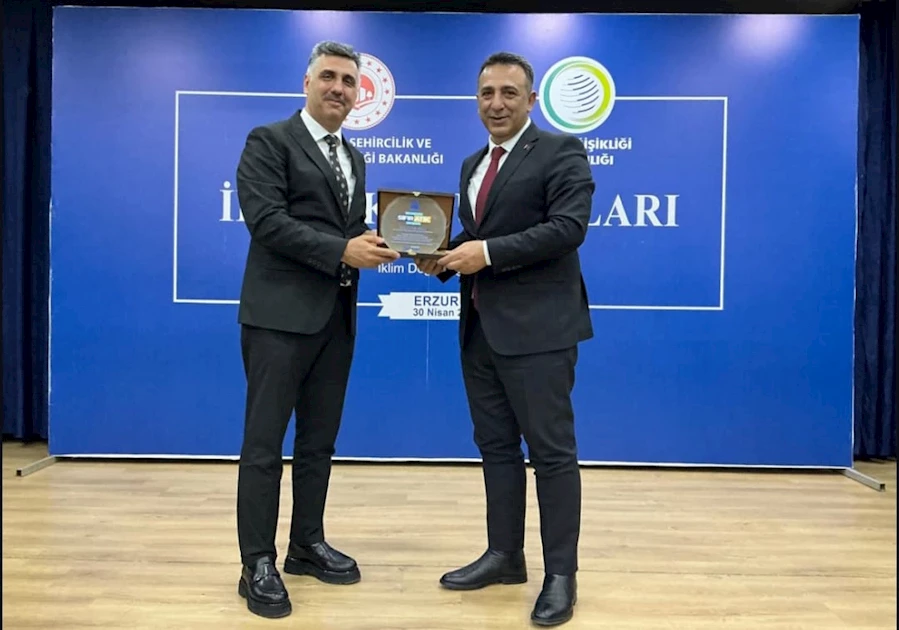 Erzurum Büyükşehir Belediyesi tarafından düzenlenen moderatörlüğünü EBB Genel Sekreter Yardımcısı Murat Altundağ'ın yaptığı geleneksel hale gelen sıfır atık yarışmasında dereceye giren öğrenciler, ödüllerini İklim Değişikliği Başkanı Prof. Dr. Halil Hasar ve Mehmet Sekmen'in elinden aldı.