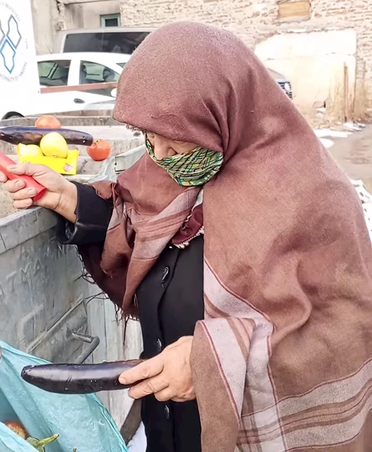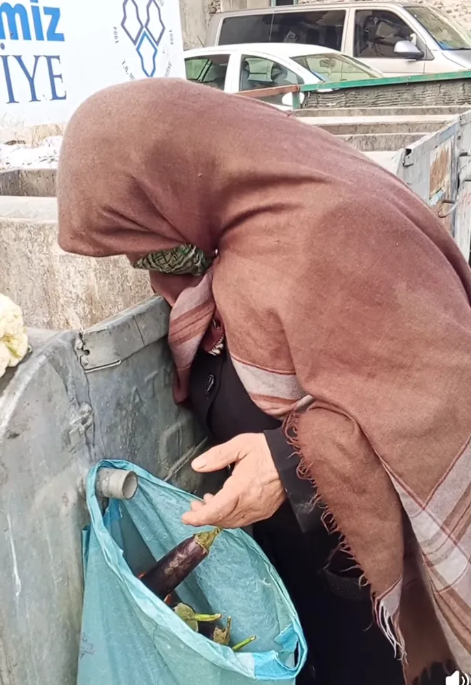 Erzurum Yakutiye ilçesinde bir vatandaş çöpten yiyecek bir şey bulma ümidiyle çöp kutusunu karıştıran bir yaşlı kadını ekranlara taşıdı.
