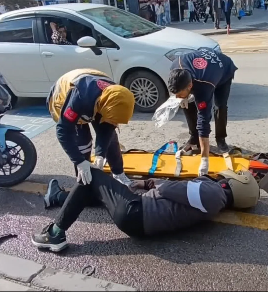 Motosiklet sürücüsü yayalara yol vermek için duran otomobile arkadan çarptı.