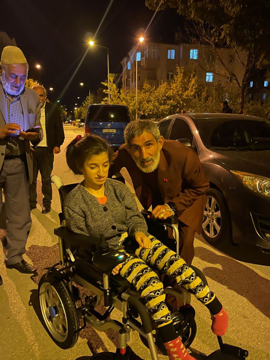 Aziziye İlçesi Dadaşkent Semtinde ikamet eden Doğuştan engelli İlayda Akmaz’ın bu sevincine ailesi birlikte ,Babası, amcası ve yardım severliliği ile şehirde adını sıkça söz ettiren Kongre Caddesinde Kamil Koç yazıhane sahibi Murat Sarılı , Cemil Karataş, ve Sinan Sezer ortak oldu.