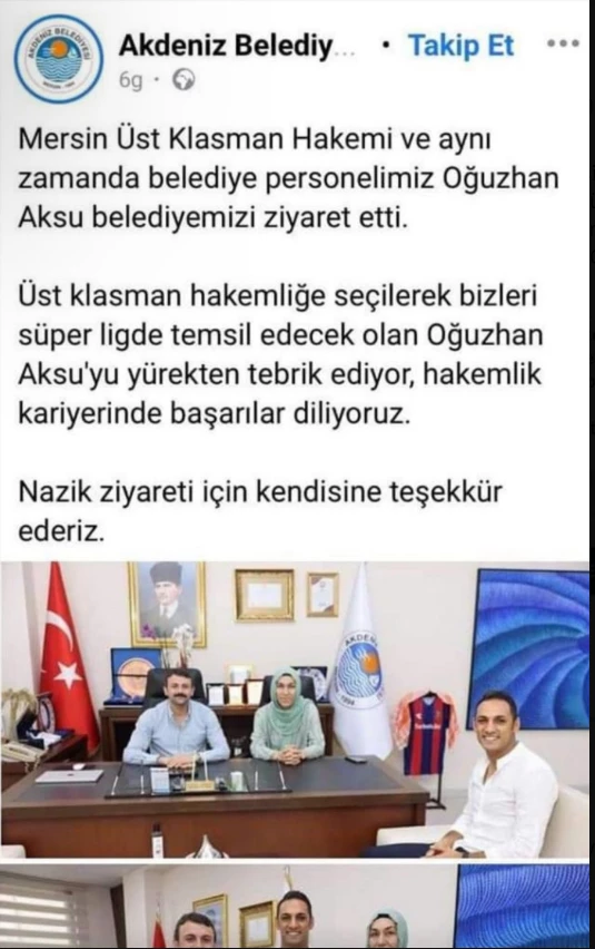 Maçın Hakemi Bitlis Nüfusuna kayıtlı Oğuzhan Aksu ile ilgili sosyal medyada , Mersin Akdeniz ilçesinde DEM Partili Akdeniz Belediyesinin çalışanı olduğu paylaşımı yapılmıştı.