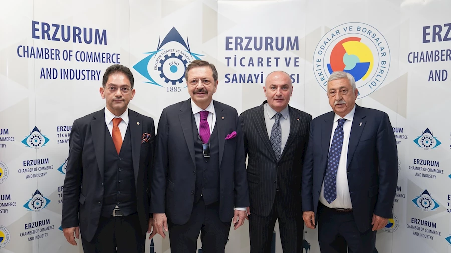 TOBB Başkanı Hisarcıklıoğlu ve TESK Başkanı Palandöken, Palandöken Ekonomi Forumu için Erzurum’daydı! ETSO’da yapılan buluşmada, Erzurum’un stratejik konumu, genç iş gücü ve lojistik avantajları ön plana çıktı.