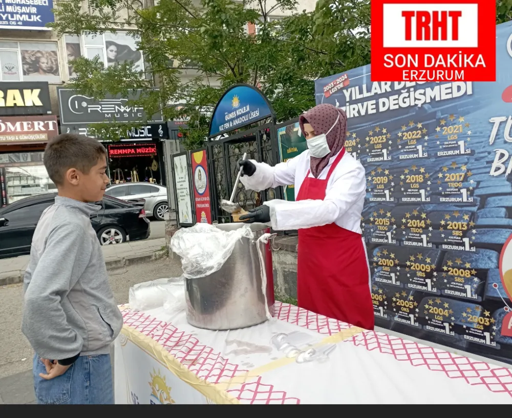 TRHABERTÜRK ERZURUM: Erzurum merkez ilçe Yakutiyede paylaşmanın, kaynaşmanın ve bereketin simgesi olan, birlik ve beraberliğin sembolü Muharrem Ayının 10.günü Aşure Günü vesilesiyle, Güneş Eğitim koleji kurumlarının önünde cuma namazı öncesi ve sonrası vatandaşlara aşure ikramında bulundu.