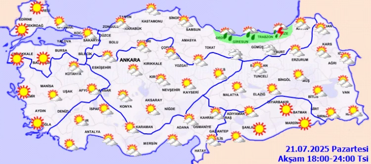 ANKARA (İGFA) - Orta ve Doğu Akdeniz’in Toroslar kesimi, Doğu Karadeniz, Doğu Anadolu’nun kuzeyi ile Ordu çevresinde yerel sağanak ve gök gürültülü yağışlar bekleniyor. Diğer bölgelerde ise güneşli ve açık bir hava hâkim olacak.