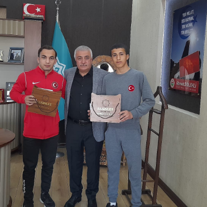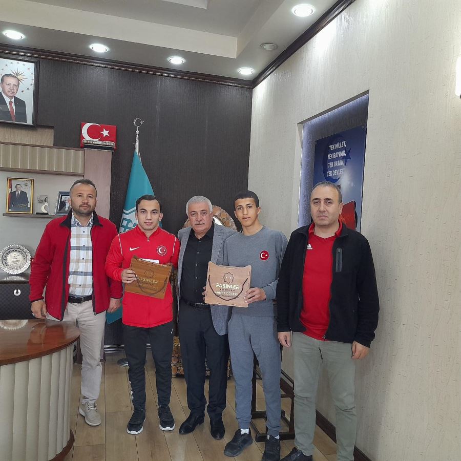 HABER Tuncay ÇİFÇİ: Yıldızlar Güreş Türkiye Şampiyonası’nda 60 kiloda ikinci olan Halil İbrahim Uzun ve 45 kiloda ikinci olan Kadir Aksakal Pasinler Belediye Başkanı Ahmet Dölekli’yi ziyarete gittiler.