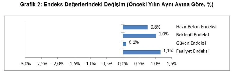 Temmuz ayında zirveye ulaşan Faaliyet Endeksi, Ağustos ayında eşik değerin altına gerilemesinin ardından eylülde de yatay ve zayıf seyrini sürdürdü. Beklenti ve Güven Endeksleri de negatif tarafta kalmaya devam ederken, birleşik Beton Endeksi düşüş gösterdi.