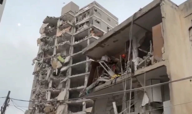 -İran füzelerinin hedef aldığı İsrail'in Bat Yam kentindeki bir mahallede ağır hasar meydana geldi.