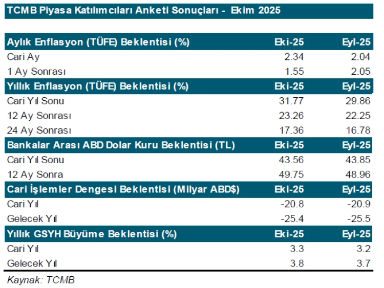TRHT ANKARA - Türkiye Cumhuriyet Merkez Bankası (TCMB), Ekim 2025 Piyasa Katılımcıları Anketi sonuçlarını açıkladı.