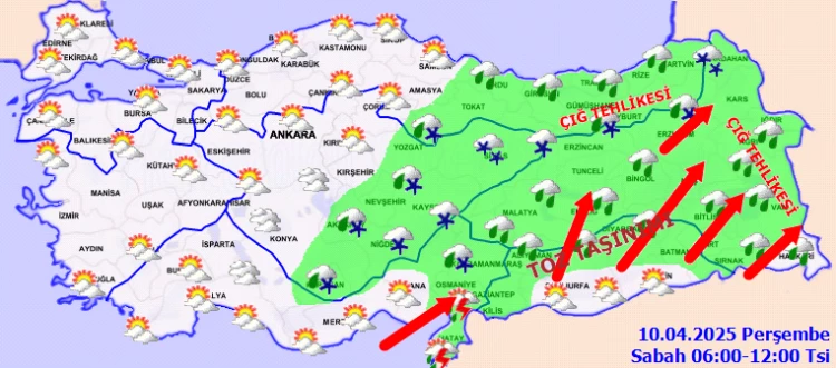 ANKARA - Meteoroloji Genel Müdürlüğü, 10 Nisan Perşembe gününe ilişkin günlük hava tahmin raporunu yayımladı.