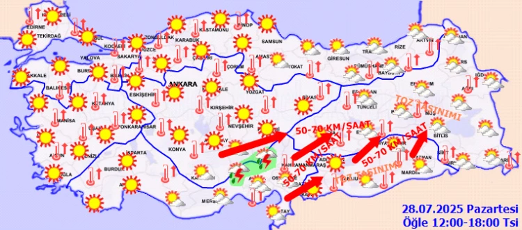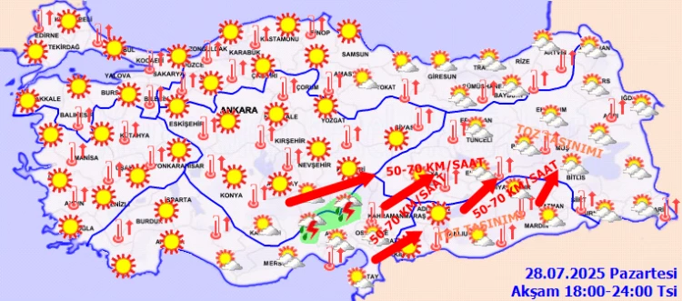 Rüzgarın, Doğu Akdeniz, İç Anadolu'nun güneydoğusu, Doğu Anadolu’nun güneybatısı ve Güneydoğu Anadolu’da güney ve güneybatı yönlerden kuvvetli ve kısa süreli fırtına (50-70 km/saat) şeklinde esmesi beklendiğinden yaşanabilecek olumsuzluklara karşı dikkatli ve tedbirli olunması gerekmektedir.