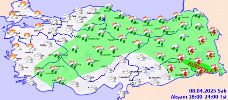 ANKARA - Meteoroloji Genel Müdürlüğü, 08 Nisan Salı gününe ilişkin hava tahmin raporunu yayımladı.