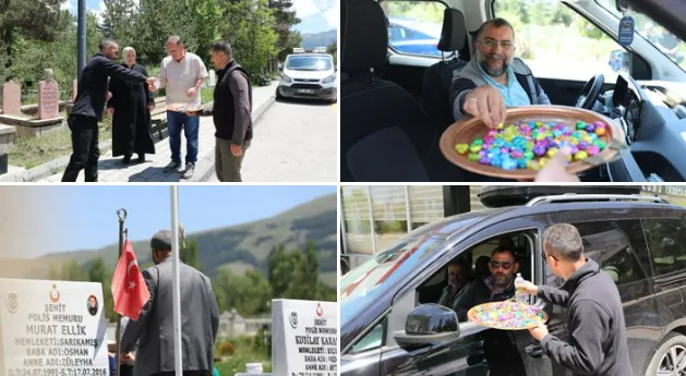 Erzurum Büyükşehir Belediyesi Mezarlıklar Müdürlüğü, Kurban Bayramı vesilesiyle mezarlık ziyareti gerçekleştiren vatandaşlara önce kolonya sonra çikolata ikram etti.
