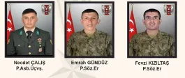 HABER Tuncay ÇİFÇİ: Astsubay üst çavuş Necdet Çalış, Piyade Sözleşmeli Er, Fevzi Kızıltaş, Piyade sözleşmeli er Emrah Gündüz şehit oldu.