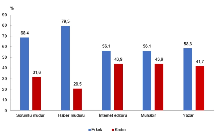 Unvan dağılımında ise yüzde 44,5 muhabir, yüzde 26,5 sayfa sekreteri, yüzde 19,4 sorumlu müdür, yüzde 7,4 yazar ve yüzde 2,1 haber müdürü olarak görev yapıyor.İnternet haber sitelerinde ise 3 bin 404 kişi çalışıyor. Çalışanların yüzde 56,3’ü lisans, yüzde 25’i lise, yüzde 10,4’ü ön lisans, yüzde 5,3’ü lise altı, yüzde 3,1’i yüksek lisans/doktora mezunu. Unvanlara göre yüzde 39,7 muhabir, yüzde 36,3 internet editörü, yüzde 11 sorumlu müdür, yüzde 9,5 yazar ve yüzde 3,4 haber müdürü olarak görev aldığı gözlendi.