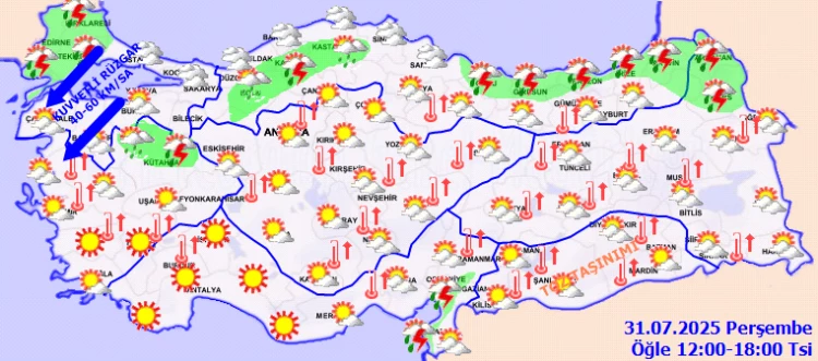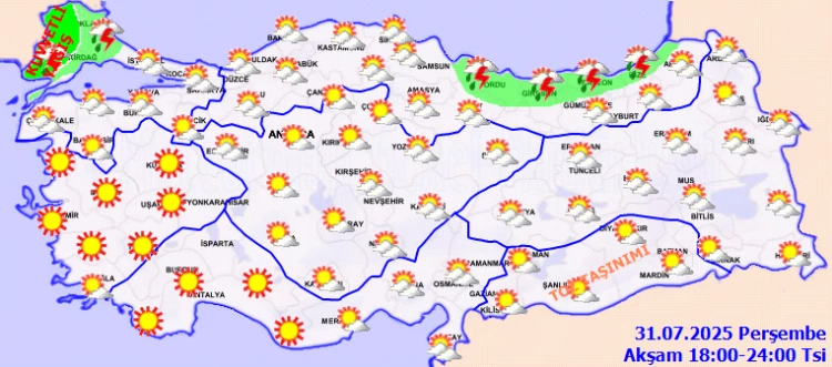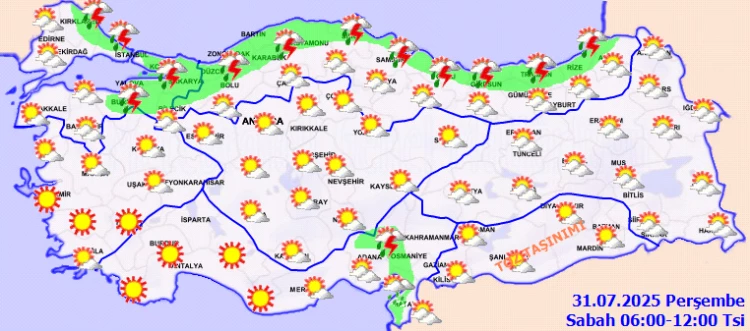 ANKARA (İGFA) - Meteoroloji Genel Müdürlüğü 31 Temmuz Perşembe gününe ilişkin hava tahmin raporunu yayımladı.