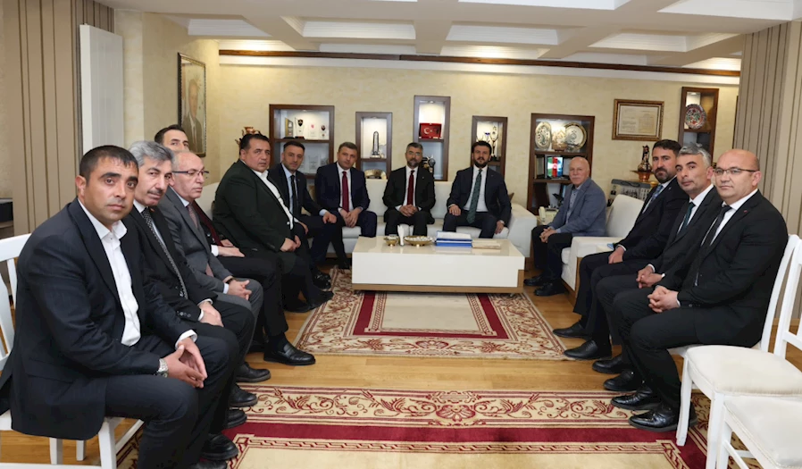 EBB Başkanı Mehmet Sekmen, AK Parti İl Başkanı Av. İbrahim Küçükoğlu ve İl yerel yönetimler başkanı Halil Ergün tarafından karşılanan misafirler ilk olarak Erzurum Büyükşehir Belediye Başkanlığında ağırlandılar.