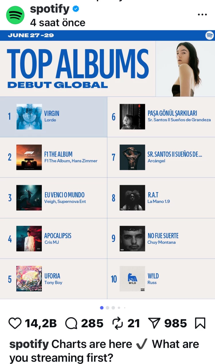 Kısa sürede büyük yankı uyandıran albüm, dünya genelinde en çok dinlenen albümler arasında 6. sıraya yükseldi.