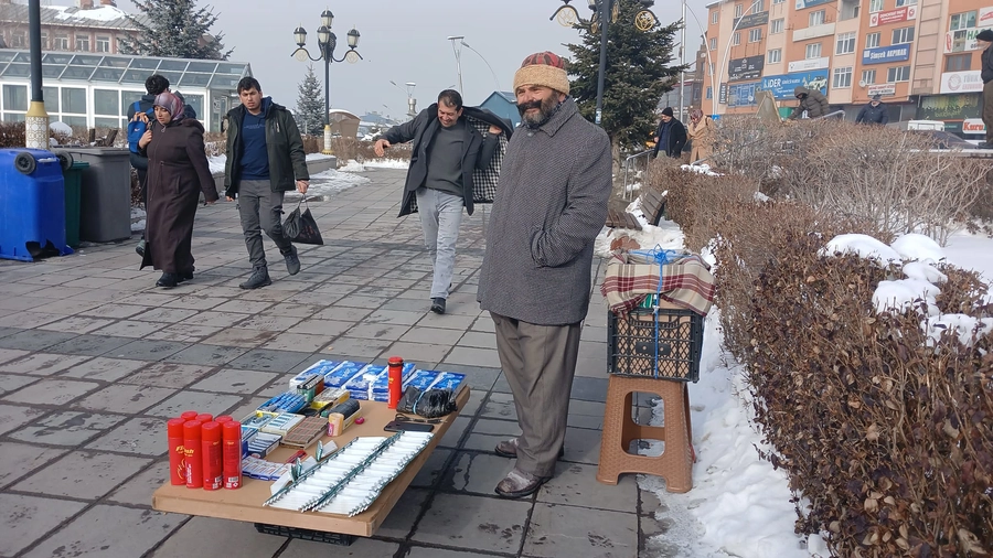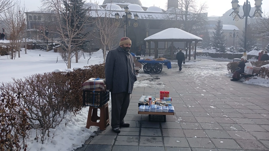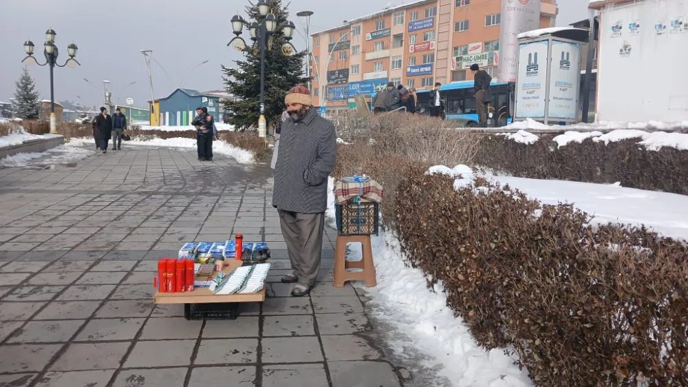 İşte bu sert coğrafyada, Yakutiye’de Lalapaşa Camii’nin önünde kameramıza yansıyan bir manzara vardı ki; insanın boğazına düğüm, yüreğine sızı bıraktı. Yoksulluğun tam ortasında dimdik duran bir Dadaş: Mehmet Sait.
