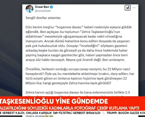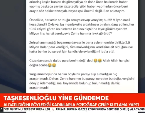 mahkemede tanık olarak dinlenmesini istediği ve mahkeme kararı sonrası  aldattığını iddia ettiği kadınlarla birlikte objektiflere poz vererek ''BİTMEYECEK DOSTLUKLAR'' başlığı ile eski  Erzurum AK Parti milletvekili Zehra Taşkesenlioğlu'un sosyal medya sayfasından paylaşım yapıldığı haberleri gündemde yer aldı.