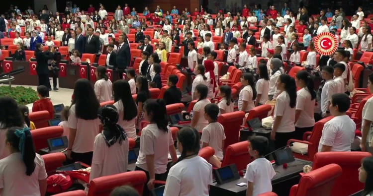 Milli Eğitim Bakanı Yusuf Tekin'in de hazır bulunduğu TBMM buluşmasında çocuklar, Genel Kurul kürsüsünden 23 Nisan'ın anlam ve önemine dair duygularını, düşüncelerini ve geleceğe dair hayallerini paylaştı.