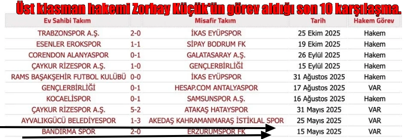 İsimler bir liste halinde yayımlanmaya başlandı; örneğin üst klasman hakemlerden: Zorbay Küçük, Melih Kurt, Egemen Artun, Muhammed Selim Özbek, Seyfettin Alper Yılmaz, Yunus Dursun ve Zorbay Küçük bu listede yer alıyor.