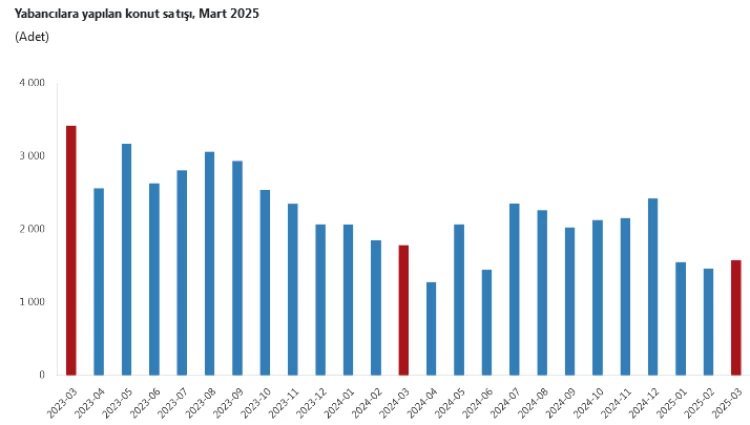 İpotekli satışlardaki artış ve ikinci el piyasasındaki hareketliliğin devam ettiğini gösteren Mart 2025 verilerine göre yabancılara satışlardaki düşüş dikkat çekt.