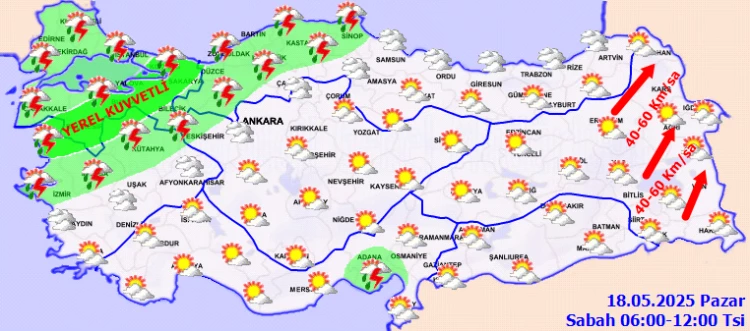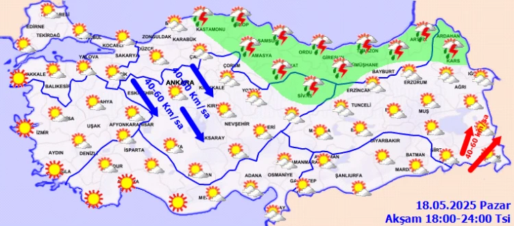 TRHABERTÜRK ANKARA (İGFA) - Meteoroloji Genel Müdürlüğü, 18 Mayıs Pazar gününe ilişkin hava tahmin raporunu yayımladı.
