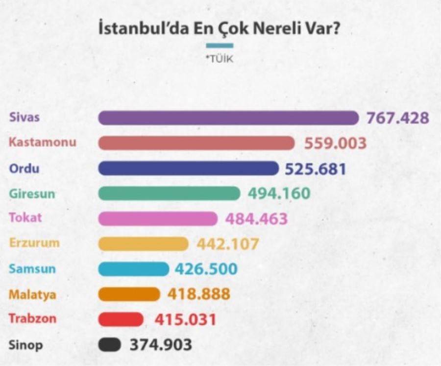 Türkiye’de En çok Erzurum’lu,İstanbul’da en çok Sivaslıdan sonra Erzurum’lu yaşıyor.