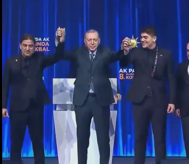 Alkışlar arasında AK Partiye geçiş yapan Karaman'ın rozetini takan Cumhurbaşkanı Erdoğan ,Ünal Karaman ve Karşıyaka'da top oynayan futbolcu oğlu Ersagun Akbar Karaman ile poz vererek mutluluğunu paylaştı.