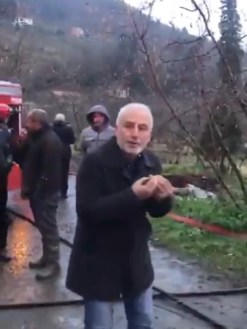Trabzon’da bir evde çıkan yangına müdahale için gelen itfaiyenin suyu bitince evi yanan vatandaş isyan etti.