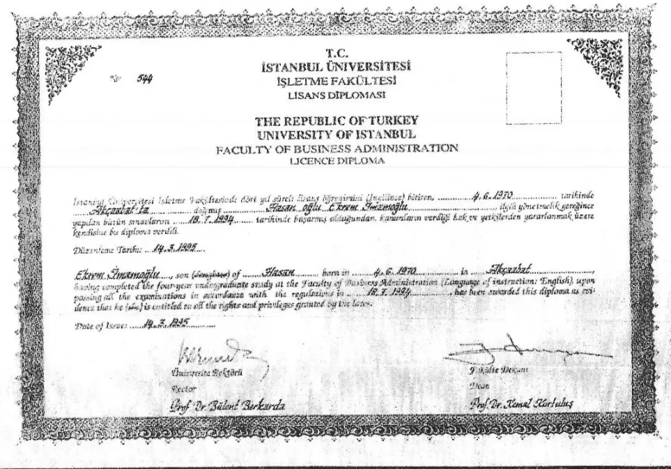 sosyal medyada yayım yapan bir özel haber kanalı tarafından yapılan açıklamada, 2 yıl öncesinden hazırlanan raporla İstanbul Büyükşehir belediye Başkanı Ekrem İmamoğlu'nun Kıbrıs'tan aldığı Diplomayla YÖK'e nakil yaptırmasının imkansız olduğuna karar veren YÖK tarafından, diplomasının sahte olduğuna karar verildiğini ve iptal edildiğini duyurdu.