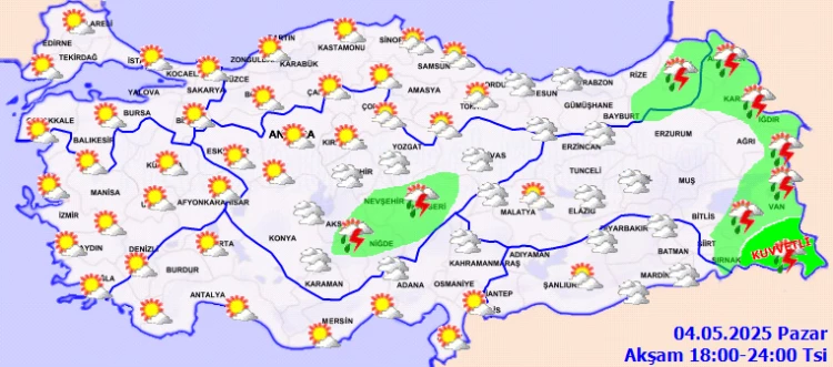 TRHABERTÜRK ANKARA - Meteoroloji Genel Müdürlüğü, 04 Mayıs Pazar gününe ilişkin hava tahmin raporunu yayımladı.
