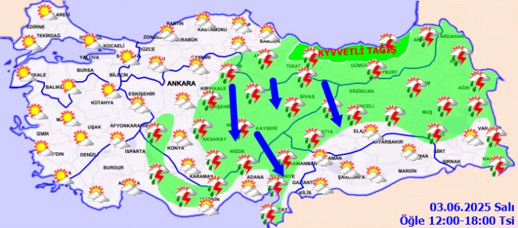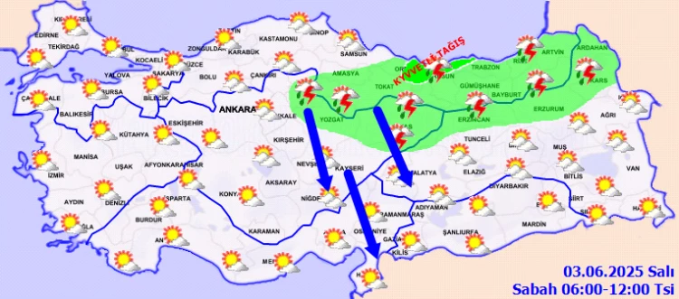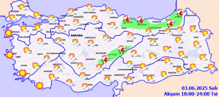TRHABERTÜRK ANKARA - Meteoroloji Genel Müdürlüğü, 3 Haziran 2025 Salı gününe ilişkin hava tahmin raporunu yayımladı.