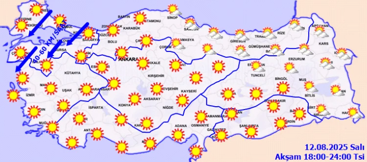 Rüzgarın Marmara ile Kuzey Ege kıyılarında kuzey ve kuzeydoğu yönlerden kuvvetli (40-70 km/saat) olarak esmesi beklendiğinden yaşanabilecek olumsuzluklara karşı dikkatli ve tedbirli olunması gerekmektedir.