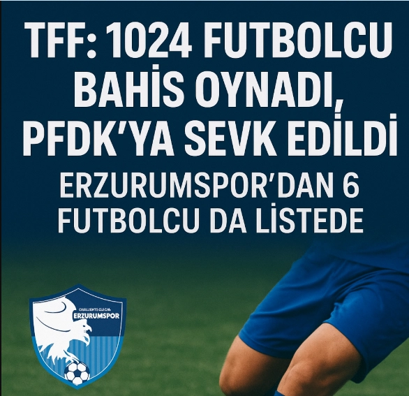 Türkiye Futbol Federasyonu (TFF) tarafından yapılan açıklamada, bahis oynadığı tespit edilen futbolcuların PFDK’ya sevk edildiği bildirildi. 1. Lig’den Erzurumspor FK’den 6 futbolcu da soruşturma kapsamında yer aldı.