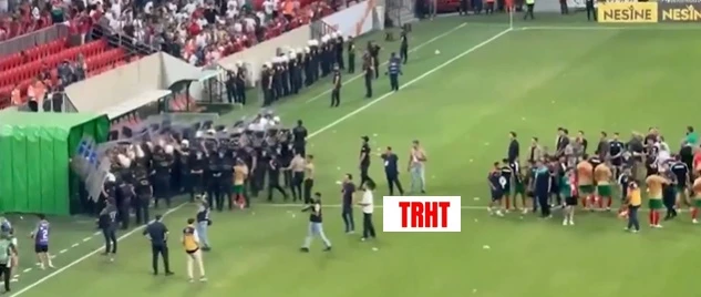 TRHABERTÜRK ERZURUM: Diyarbakır'da Kesici aletlerle yaralanan Erzurumsporlu futbolcuların saldırıya uğradığı sırada Tribünde bulunan Amedspor'lu Diyarbakırlı taraftarlar Bebek katili PKK lideri İmrali Cezaevi mahkumu Abdullah Öcalan'a hitaben BİJİ SELO,BİJİ APO( Güzel Selahattin Demirtaş,Güzel Abdullah Öcalan)